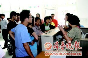 | 13日,提前到校的鲁大新生正在领取宿舍钥匙。 |