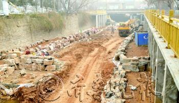 | 市政部门工作人员正在对城区内河道进行治理,打造水体景观。 本报记者 王光营 摄 |