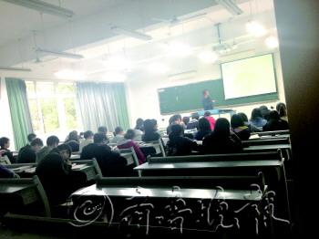 | 19日,重庆工商大学校门口已然恢复平静。 |  | 19日,重庆工商大学的一个教室里正在上课。 |