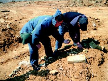 | 10日,王家后人在磁山整理被盗挖的祖先墓地。 |  | ▲王家后人称这些是被人从墓中挖出来的祖先遗骨。 记者 苑菲菲 摄 |  | ◤王懿荣儿子墓挖出的珍贵鼻烟壶已成烟台市博物馆的镇馆之宝。 |