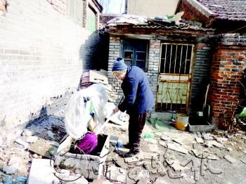 | ▲很少人来往的院落显得十分荒凉。 本报记者 叶嘉利 摄 |  | ▲庞秀清老太太在院里唯一的水龙头边洗拖把。 |