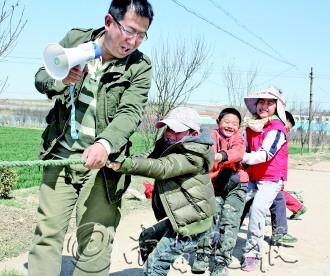 | ▲本报小记者在挖荠菜。 |  | ◤部分小记者在进行拔 河比赛。 |