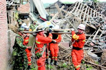 | ▲4月20日,在四川省雅安市芦山县清仁乡仁加村前坝组一倒塌的民房内,乐山消防救援队成功救出一名80多岁的瘫痪老人。 新华社发 |