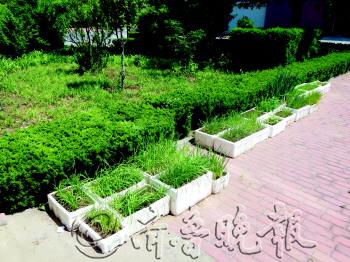 | 金沟寨小区用泡沫箱种菜的情况普遍存在。 记者 王永军 摄 |