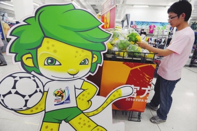 在耐克等品牌专卖店的显著位置,南非世界杯吉祥物“扎库米”的卡通形象夺人眼球,商家播放的电视节目,也多是往期足球赛事的经典瞬间。据了解,许多服装店将足球商品作为今年的主推商品,并随时留意品牌推出的新款球衣和配件。在一家品牌店,销售人员告诉记者,新款球衣目前暂无折扣。“与世界杯有关的服装商品,甚至只要与足球有关的,这段时间都卖得不错。”
