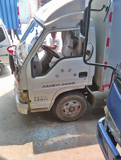 22日上午,记者赶到位于零点立交桥附近的这家茶叶批发市场,市场西侧就是一个临时停车处。此时,在一辆标有“山东沂源”字样的白色货车前,车主王先生正拿着扫帚清扫驾驶员座位上的玻璃碎片,一旁的地上也满是白花花的玻璃碴儿,“真气人啊”。