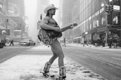 据美联社报道,“裸体牛仔”原名罗伯特·布尔克,头戴宽沿牛仔帽、身穿紧身内裤、脚蹬高筒靴、抱着吉他是他的典型特征。