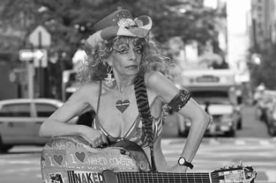 然而,最近在时报广场出现的一名女牛仔让布尔克很恼火。她的装扮和布尔克相似,不过穿的是一套比基尼泳装。她给自己取名“裸体女牛仔”,同样靠卖唱及与游人合影为生。