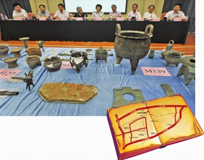 在本次考古发现的最大墓葬第139号墓中,考古人员共发现包括鼎、爵、盉(he)等在内的青铜器14件。从器物特点判断,应属商代前期后段。其中一件直径40厘米、通高60厘米的铜鼎,可与上世纪七十年代在郑州商城出土的同期大鼎相媲美,属当时重器,在近几十年考古中罕见;一对铜盉,纹饰精美,专家表示其器形前所未见,表现出极高的铸造工艺水平;另有一件形体硕大、器身厚重的铜钺,反映了墓主人极高的身份等级,相当于“东方战事总司令”。权威专家称,该座墓葬出土器物规格之高、组合之齐全,不仅为我国东部地区所仅见,在全国也少见。
