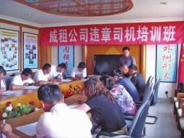 6月份“安全月”即将结束,威租公司通过播放事故片和考试等方式,对该公司违规掉头、超速等行为的出租车从业人员进行培训。