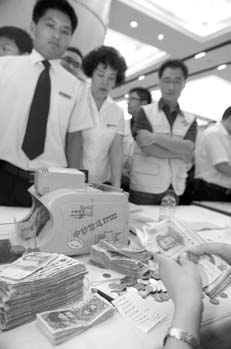 活动现场—位9岁的小女孩捐出了14.8元的零用钱,她希望把这些钱捐给灾区的小朋友买矿泉水和方便面。她的妈妈说,助人为乐要从小培养。