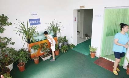17日,在烟台火车站北广场公厕,内部的美化布置让人眼前一亮。据了解,烟台火车站南、北两个广场的公厕日均接待外地旅客和本地过往市民分别超过了3000和5000人次,为方便市民和旅客,广场管理处对这两个公厕进行了适当美化、亮化处理,公厕内部地面铺设了地毯、种上了花卉,还安装了鱼缸,并且实行24小时免费开放使用。 本报记者赵金阳 摄