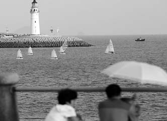 17日,在奥帆中心海域,2010青岛国际青少年帆船训练营的选手下海扬帆,形成一道独特风景。据介绍,本次训练营共有来自德国、韩国、日本等6个国家的300余名青少年选手参加,目的是为中外青少年搭建一个交流学习的平台。本报记者 杨宁 摄