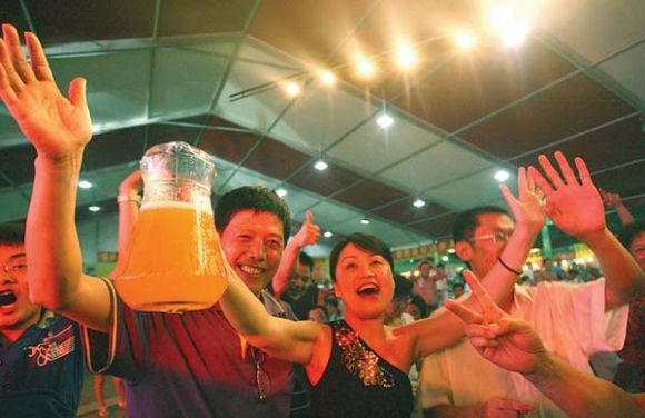 夜幕降临,啤酒城又迎来一天当中最热闹的时刻,邀上三五知己,到啤酒城喝上几杯,然后趁着微醉,随着音乐尽情舞动,将身上所有的压力尽情释放,这时候,啤酒城不单单是喝酒的地方,更像一个大舞池,形形色色的人将束缚已久的身体彻底释放,尽情扭动。今夜,让我们舞动吧。