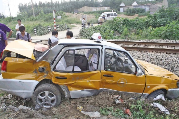 本报泰安8月18日讯18日下午,泰安一辆出租车通过岱岳区天平街道办事处岩庄附近铁路口时,被一列货运火车撞到右后尾部。事故发生后,车上受伤人员被送往医院。