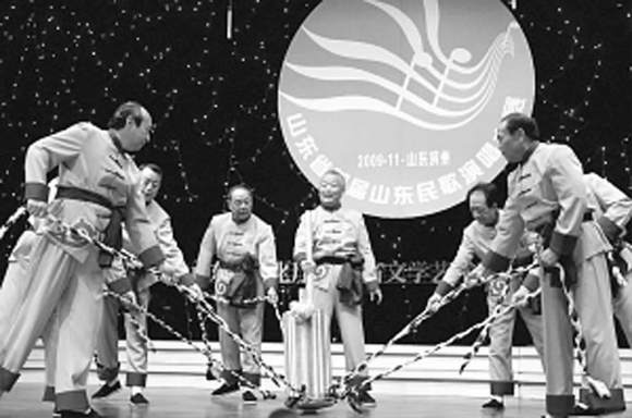 消夏的晚会上,又一次听到了那原汁原味、亢奋优美、铿锵有力的声音。“嗨……哟……”