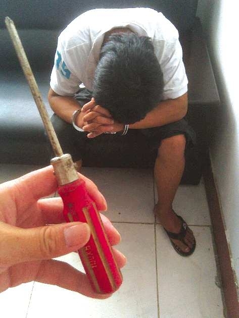 循声而望,王先生发现一小伙光着膀子刚从自家院墙上跳下。更让他感到生疑的是,小伙黑短裤的一个口袋内露出一把螺丝刀。