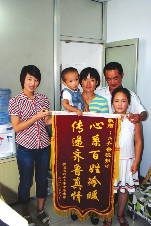 18日,费县的小皓皓及其家人将一面锦旗送到了本报今日沂蒙,以感谢本报对皓皓的帮助。