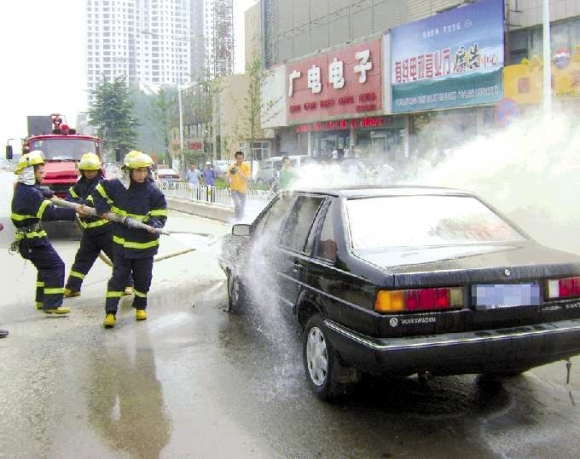 消防官兵在现场看到,浓烟弥漫在整辆车周围,轿车内还不时地蹿出一条条火舌,并能闻到一股焦煳的味道。指挥员迅速下令用一支水枪从车头进行扑救,再由一名消防员从旁协助,用准备好的铁铤撬开车的前盖从内部灭火。3分钟后,轿车后半部分的火苗基本被扑灭。接着消防官兵又用水枪对轿车进行了全方位的喷射以冷却车身,防止轿车复燃。