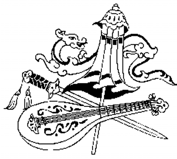 这四大天王之所以又唤名“风调雨顺”,完全是被“汉化”以后的事,他们完全是按照中国人的意志取的,是中国人的习惯称呼。说南方增长天王手持剑,是司风;东方持国天王手拿琵琶,是司调;北方多闻天王手执伞,司雨;西方广目天王手缠龙,是司顺。这四大天王各司其职,组合拢来便成了“风调雨顺”。如图案即以四法宝组成一组吉祥物,象征风调雨顺,天下太平。