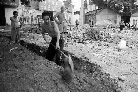 记者在发掘现场看到,工作人员已经清理出8条共计200多米的探沟,探沟宽约两米,深越1米。探沟内清晰可见整齐砌好的青砖,青砖之间是白灰。“这些有的是大门基础、有的是院墙基础、有的是其他建筑基础,这些建筑遗址清理出来后,院落遗址也就雏形初现了。但是由于目前很大部分的建筑占压,对发掘工作带来很大难度”。李德渠副主任告诉记者。但是目前的发掘工作已经掌握了第一手资料,将为今后的恢复重建提供更多的基础材料。