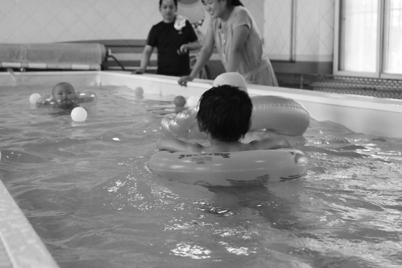 守在一旁的王女士说:“游完后孩子睡得特别香,她很喜欢玩水,这已经是她降生后第二次游泳了。”记者在采访中了解到,婴幼儿游泳一次收费从15元-40元不等,多数家长并非一次性消费,而选择购买实惠的年卡或三年卡。
