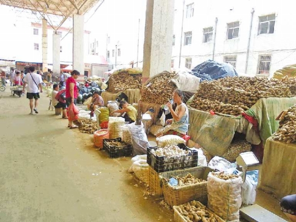 生姜批发商们介绍说,威海市场上的生姜大都产自乳山,目前生姜正处于“青黄不接”的时候,陈姜的库存所剩无几,新姜还没有上市,“一般的商贩拿钱都买不到货,都被搞外贸的把货给提走了”。前两年,生姜价格低,生姜种植面积减少也是生姜价格高居不下的一个原因。8月份以来,在生姜窖存量急剧减少的情况下,出口需求量仍在不断增加,在一定程度上助长了生姜价格上涨的势头。