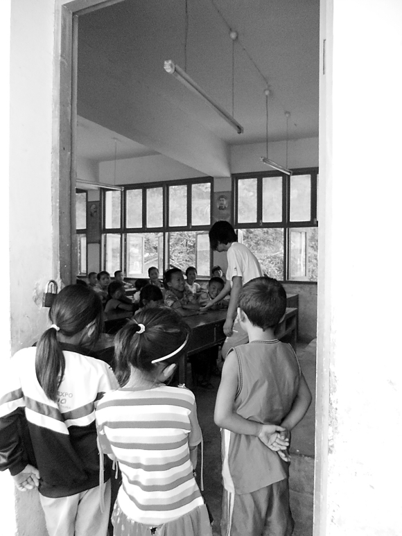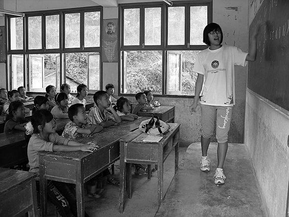 “我现在才知道,原来还有人要翻山越岭十几里路上小学。我现在才知道,原来现在还有人要好几个班来上合堂。我现在才知道,原来还有人直到小学六年级还没有学英语。我觉得这次支教我最想说的一个词就是‘不知道’,不知道怎样才能帮助他们,不知道怎样才能让他们知道读书的重要性,不知道怎样才能让更多的人来了解他们,帮助他们……”这是支教队员秦芬在自己的支教日记里写下的一段话。这个90后的女孩在支教的最后一天因为全身过敏不得不在凌晨3点住进乡镇医院治疗。折腾得整夜没睡的她依然坚持完成了第二天的支教任务。