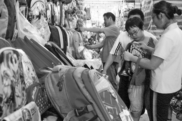中小学开学还有十几天,8月19日,一些父母在给孩子选购书包等学习用具。
