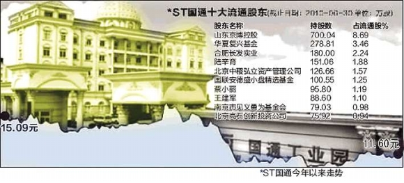 *ST国通公开信息显示,早在公司今年一季报时,南京见义勇为基金会就以79.3万股的持有量名列公司第五大流通股股东,截至6月30日,南京市见义勇为基金会持有的公司股票数变为79.03万股,显示其二季度进行了小幅减持。