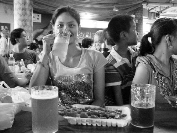 而在另一桌上,济南来青的张先生一家三口要了六种类型的啤酒,张先生要了一杯原浆、一杯纯生、一杯黑啤,张太太则要了一杯草莓味啤酒、一杯螺旋藻味啤酒,给18岁的女儿要了杯菠萝口味的啤酒。“平时都是他喝酒,我们娘俩看着,今年可以品尝一下了,喝点水果味的。”张太太说。
