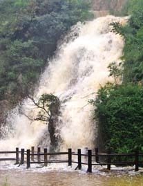 8月19日,济南南部山区降下罕见暴雨,不少景区的山上溪流变成汹涌的瀑布。这场暴雨让南部山区河流水位暴涨,山涧瀑布美丽如画。