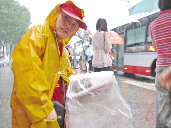 本报8月19日讯19日,由本报等单位主办的“齐鲁雏鹰工程报纸营销大赛”最后一期比赛进入倒数第二天。活动接近尾声,又赶上突降大雨,但丝毫没有阻挡小报童卖报的脚步。记者采访了解到,当日仍有不少报童冒雨走上街头,他们身披雨衣,用塑料袋裹着报纸,在公交站牌、街头餐馆、居民小区内坚持叫卖。