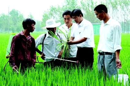 8月17日,郯城县郯城镇十里村农民在水稻田间喷洒农药。时下正值秋粮管理关键时期,郯城县组织农技人员深入田间地头为农民讲解秋粮管理知识,组织农民及时加强对水稻,玉米等秋季作物的田间管理,力夺秋粮丰收。 张春雷 摄
