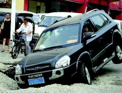 本报8月22日热线消息(记者 季善文 周磊)22日,在市烈士陵园北门附近一个三叉路口处,市民王先生驾驶一辆越野车路过,一不留神开进了路上的一个大坑内,车子陷在里面,底盘受损,所幸驾乘人员并无受伤。