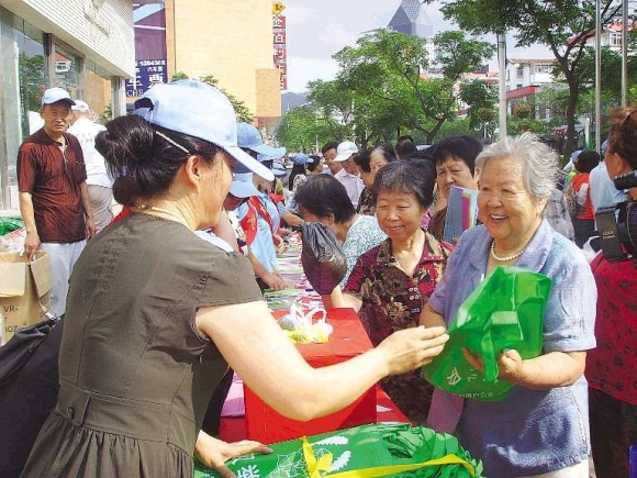 市民交5个一次性塑料袋,就能换1个环保购物袋,活动当天环保志愿者共回收了1000多个塑