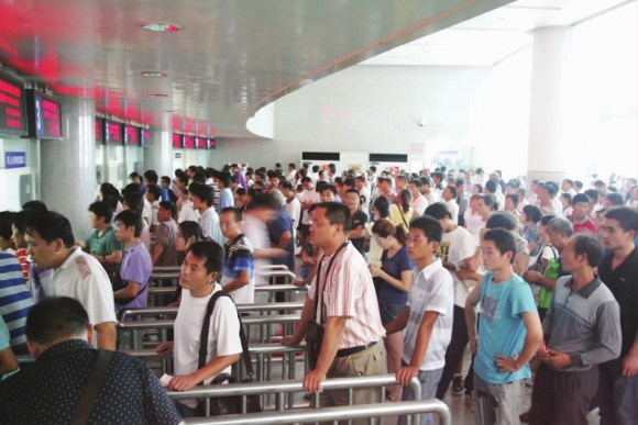 22日,在潍坊火车站售票厅挤满了前来购票的市民。随着各个高校开学日期日益临近,学生开始陆续返校铁路客运迎来暑运学生流。据火车站工作人员介绍,目前火车站每天发送旅客量在1.2万左右,学生约占3成。客流方向主要以济南、青岛、烟台、北京、西安等城市为主,因为学生可以提前15天购票因而多数学生都能买到车票。