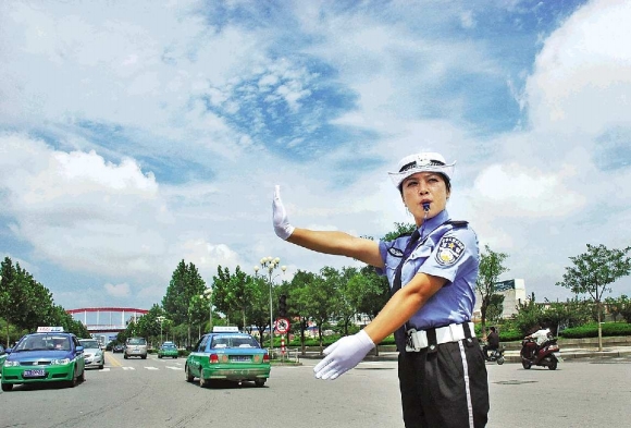 接下来,就是紧张的训练。20多天的训练,站在指挥台上,手势、吹哨、交通指挥、站姿站位,她每一个动作都学得仔细认真。“很庆幸的是,我训练的时候没病倒,嘿嘿。”梁园说,今天她很幸运,第一天上岗天气十分凉爽。