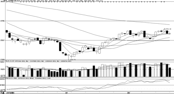 技术上看,日线上沪指重心逐步下移,周一收出“假阳十字星”,20日和10日线均线失而复得。因周一炒作氛围依旧存在,以及股指翘尾走势,今日股指或仍维持弱势震荡,但短期调整风险升级,建议今日向下关注2636点、2580—2610支撑,上行关注以及2655—2680之间的压力,以及量价配合情况。