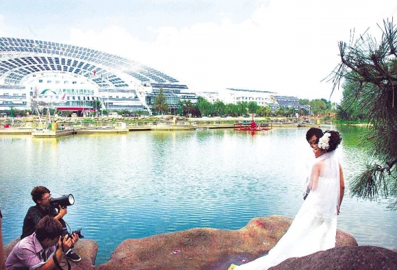 8月22日,一对新人在德州太阳谷拍摄婚纱照。太阳谷美丽的景色逐渐被越来越多的摄影师和新人所青睐,成为市民拍照留念的新宠。本报见习记者 马志勇 摄影报道