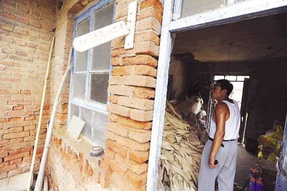 通街之后,郭仁水把本应属于自己的一处宅基地分给无房户,自己搬到了村口棉花站一处空出来的房子里,一直住到现在。而借来的这处房子,因为年久失修,其中两间已经塌陷了,仅剩的两间,四处透风漏雨。“(房子)塌的时候幸好屋里没人。”站在破旧的院子里,郭仁水的妻子憨厚地笑了笑说。