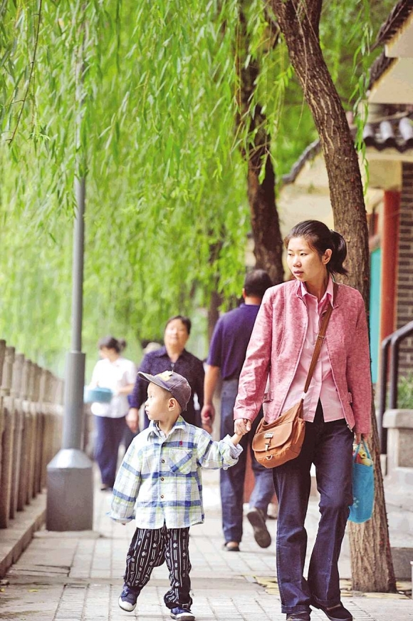 23日,在环城公园,大人和小孩穿着长褂、长裤在公