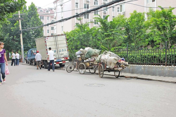 8月23日上午9时许,南辛庄中街,路人行色匆匆。三位老大娘各自拎着菜篮子,有说有笑地顺路向南走。