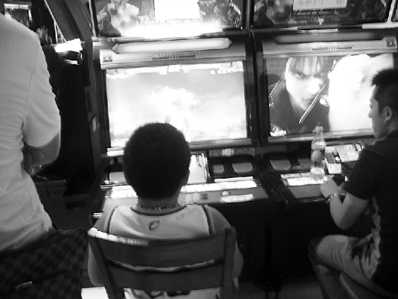 来电玩城的,不仅仅有中小学生,六七岁左右的孩童也并不鲜见。一个6岁模样的小男孩正在全神贯注地玩着“拳皇”,看其操作娴熟的程度,明显不是第一次来玩儿。