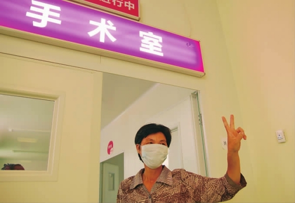 23日,泰安市环卫处环卫二所的史女士来到泰安丽人医院的接待室,除了有她女儿的相伴,泰安市环卫处工会的工作人员也陪同前来。下午两点半,手术室的灯亮起,史女士在手术室前和女儿深深拥抱后向陪同的人做了一个胜利的姿势,就进了手术室。