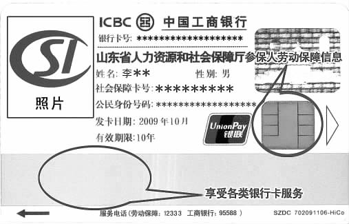社会保障卡是由人力资源和社会保障部统一规划设计,各级政府劳动保障行政部门面向社会发行,通过劳动保障信息管理系统,方便用人单位、在职职工、离退休人员和城镇居民办理社会保险、劳动就业等相关社会事务的集成电路卡。泰安市使用的社会保障卡含有IC芯片和银行磁条的双界面卡,其中IC芯片包含了参保人的劳动保障基本信息,持卡人可以享受到各类劳动保障服务。通过银行磁条,可以使用工商银行牡丹卡的各类服务。