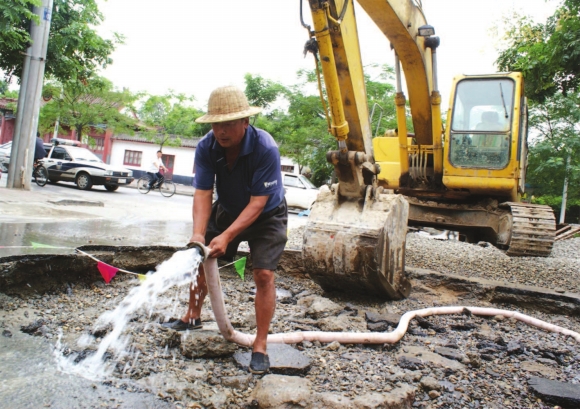 本报8月23日C08版刊登了《路面大坑“咬住”越野车》一文,路面塌陷引起了兰山区住建局的关注。对于造成刘家园街路面塌陷的原因,兰山区住建局工作人员称,是由该路段地下热力管道漏水引起的。他们首先将塌陷路面填平后,再铺设沥青,预计23日就可完工。图为塌陷路面整修现场。