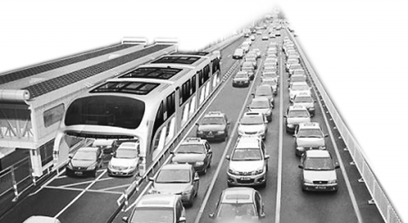 宋有洲告诉记者,“立体快巴”平均时速为40至50公里,而大城市普通公交大巴只有15至20公里。“立体快巴”承载的人数为1200人至1400人,是普通大巴的几十倍,可以减少20%至30%的路面交通拥堵。