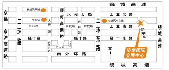 由于省城近期多条道路整修,外地来济的自驾车主最好能够统一到济南东高速路口下高速,然后沿经十东路一直向西,至高新技术开发区舜华路右拐,向北至齐鲁软件园右转后沿路标“济南国际会展中心方向”指示,至轻骑路后左转,可达国际会展中心。