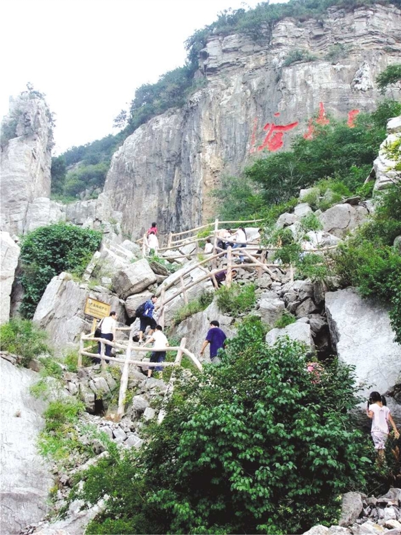 在枣庄山亭宿过一晚,养足了精神,我们又驱车前往熊耳山国家地质公园。熊耳山因远观若熊耳而得名,山高不过数百米,但爬起来却并不容易。我们沿着石阶路,弯曲而上,两边布满了荆棘,由于早上刚下过小雨,脚下不停的打滑,但小记者们异常勇敢,在呐喊声中爬过一条条石缝,逾过一块块巨石,这些岩石是300年前郯城大地震引发的山体崩塌的遗迹,大的有数千吨重,小的也有几十吨,很是壮观;行至山顶我们便径直进入双龙大裂谷,裂谷开始的一段并不惊险,越往里走越昏暗,两边都是千仞峭壁,中间只隐约可见一线的天空。再走两步,头顶上便只泻下几缕阳光,照着这幽深的谷愈显静谧。谷底是看不见天的,也感觉不到天的存在,偶尔从崖上落下几滴水珠,凉透人的心脾。走出峡谷,扶岩石远眺,但见四周成片的田野和炊烟袅袅的村落,分不清张庄李庄,也看不清深沟浅坎,这种朦胧的美引得小记者们争先恐后的拍起照来……